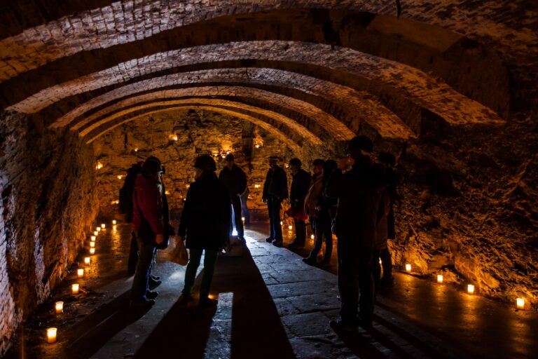 Ausgerüstet mit Helm und Taschenlampe geht es auf eine eindrucksvolle Entdeckungsreise durch die verborgenen Bereiche von zwei Bunkeranlagen im Untergrund der Stadt.